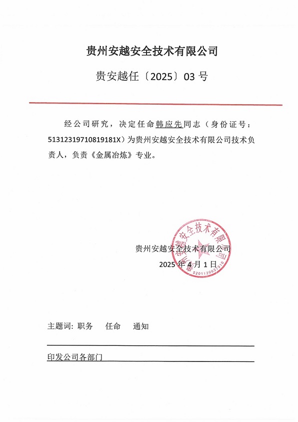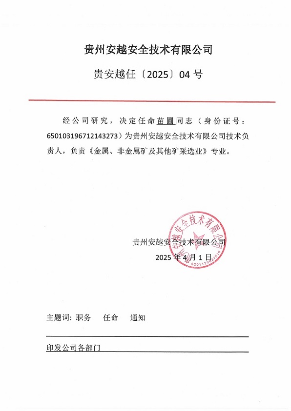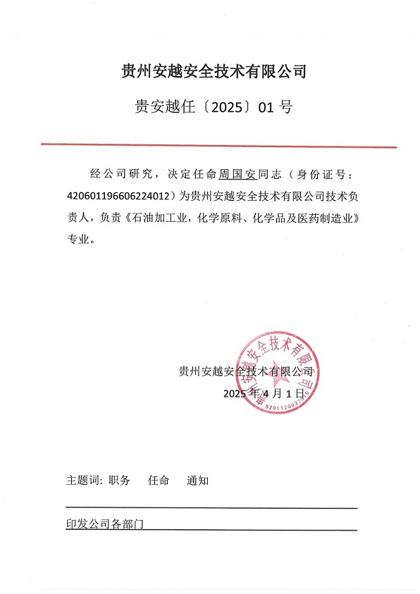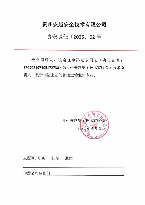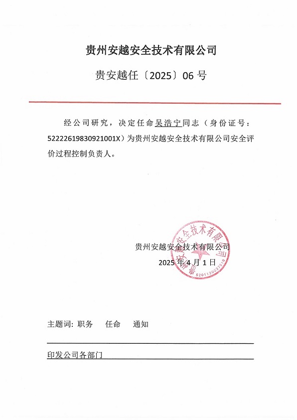 技術(shù)負責人與過控負責人任命書