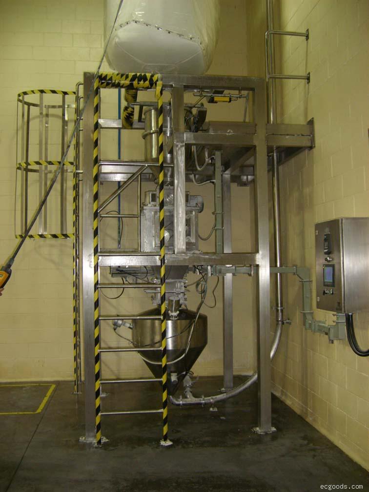 噸包拆包機(jī)卸載方式主要分為兩種:一種是大袋開袋后和大袋卸料站叉車將大袋(或噸袋)吊裝到卸料機(jī)的機(jī)架上,它本身不帶起重設(shè)備,二是大袋開袋站和大袋卸料站是靠自身的起重設(shè)備將大袋(或噸袋)吊裝到卸料機(jī)的機(jī)架上,不需要外界的幫助,它通過提升噸袋至設(shè)備進(jìn)料口,人工拆開噸袋下料口,打開流量閥并附以拍打、振動、破碎等裝置,促使袋內(nèi)的粉粒狀物料靠重力落進(jìn)料倉來完成拆包卸料工作,整個過程是全自動控制,系統(tǒng)操作穩(wěn)定,能完成連續(xù)拆包的任務(wù),操作過程簡單方便,通過相關(guān)實(shí)驗(yàn)結(jié)果可知,拆完一包料的時間大約是5-6分鐘,領(lǐng)先于國內(nèi)大多機(jī)械設(shè)備生產(chǎn)公司。