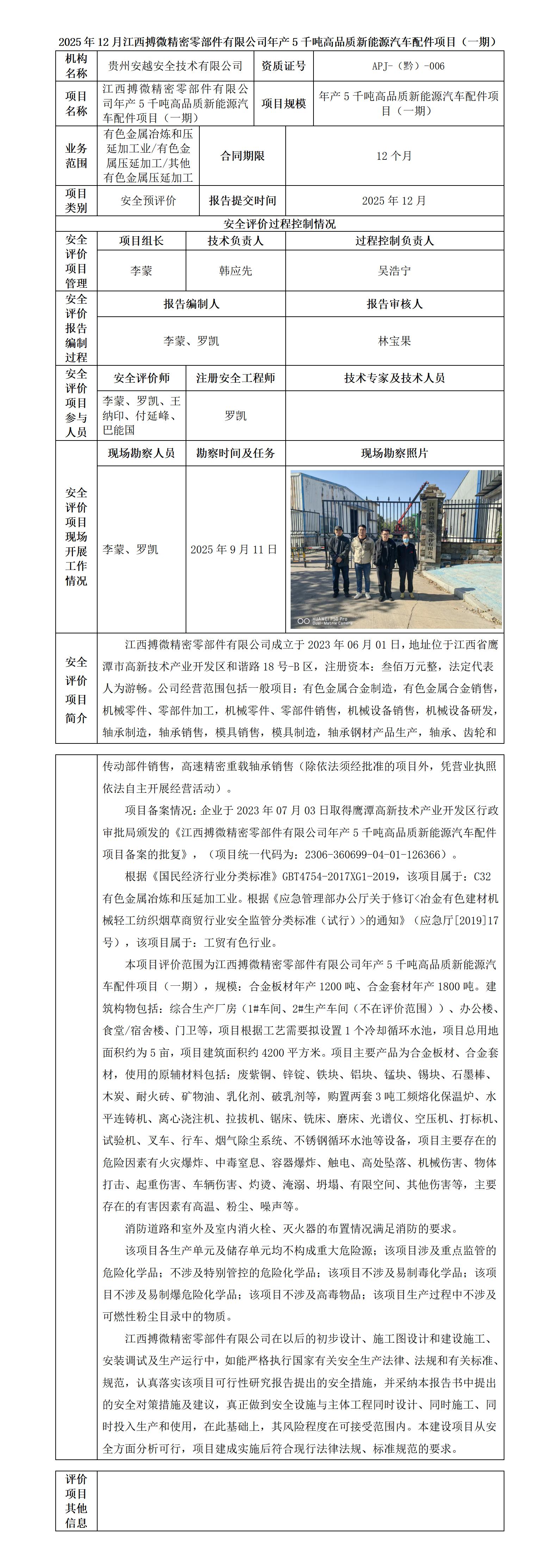 江西搏微精密零部件有限公司年產5千噸高品質新能源汽車配件項目(一期)